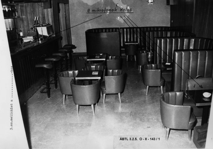 Így a mai is hasonló funkcióval működő bár, egy sikertelen állambiztonsági kezdeményezés kapcsán, a kádári titkosszolgálatok korlátozott lehetőségeire és a belügyi korrupcióre is emlékeztet.