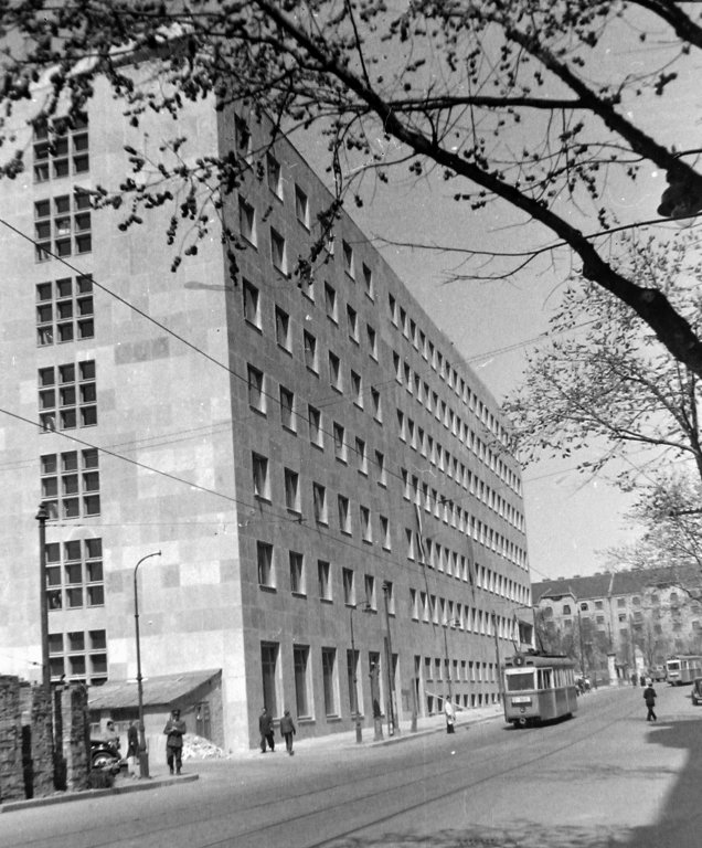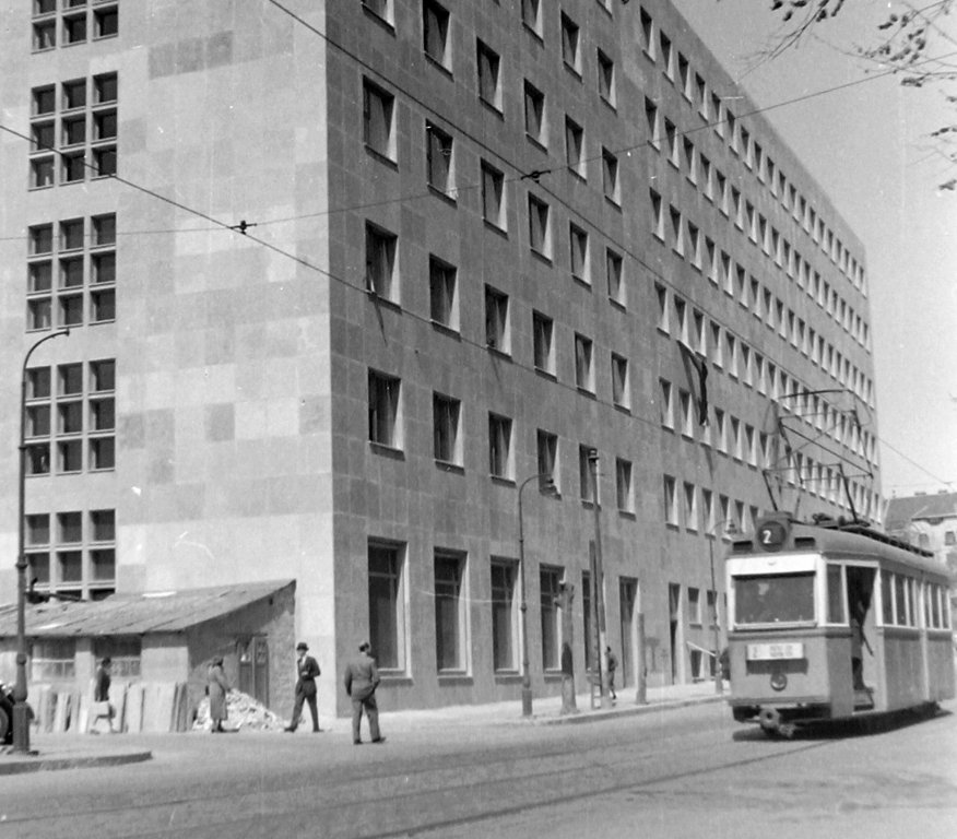 A modernista stílusban újjáépített és átszerkesztett, H alaprajzú épület 1950 és 1953 között az Államvédelmi Hatóság központi irodaháza lett. Az épülettel kapcsolatban több városi legenda is elterjedt. Az egyik legismertebb szerint a pincében egy emberhúsdaráló működött, amelynek segítségével a meggyilkoltak holttesteit eltüntették, a maradványokat pedig közvetlenül a Dunába juttatták. Mindebből természetesen semmi sem igaz.