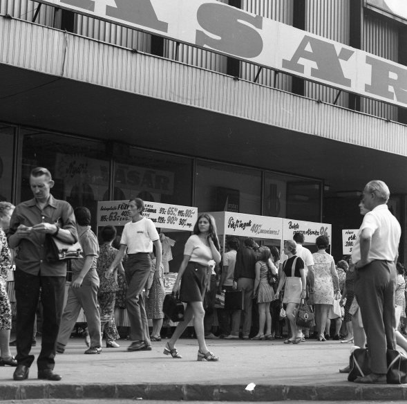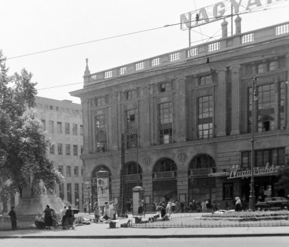 Az 1926. március 1-jén megnyílt Corvin sokáig Budapest legdivatosabb áruházának számított. A világháborúban súlyos sérüléseket szenvedett épület 1945. január-február hónapjaiban hullaházként működött. 1948-ban államosították, majd a Szovjet Javakat Kezelő Hivatalnak adták jóvátétel gyanánt. A Szovjetunió „ajándékaként” 1952-ben kapta vissza a nagyközönség. 1956-ban újra megsérült, és mivel felújítására nem került sor, hamarosan életveszélyessé vált, ezért eredeti, klasszicizáló homlokzatát 1966-ban modern alumíniumborítással fedték el.