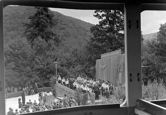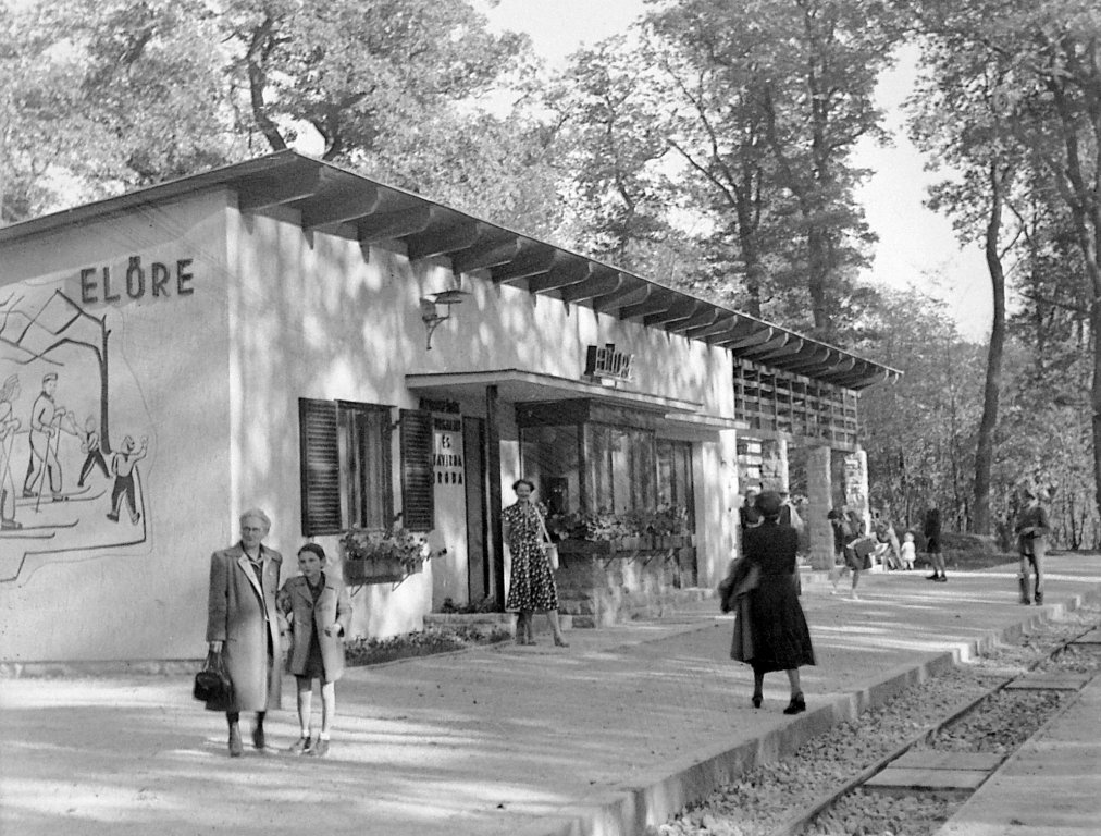 Az Úttörővasút építésének gondolata szovjet és jugoszláv példa nyomán merült fel Magyarországon. A Széchenyi-hegyi helyszínválasztást a Csillebércen létesülő úttörőtábor építésének megkezdése indokolta. A társadalmi munkában (is) épülő, keskeny nyomtávú vasútpálya első szakasza 1948-ban készült el, a Hűvösvölgyig vezető utolsót 1950-ben adták át. Az épületek díszítése néhol a mai napig őrzi a szocreál motívumokat.